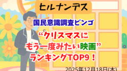 頭の回転が早そうな有名人TOP9は?2025年12月18日(木)の「ヒルナンデス」の「国民意識調査ビンゴ」クイズは、「クリスマスにもう一度みたい映画」TOP9! ..... Read More